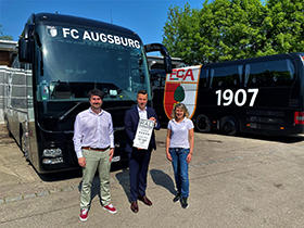 Bequeme Sitze mit Beinauflagen, Sitzgruppen mit elektrisch verstellbaren Tischen sowie eine Bordküche und Satellitenfernsehen: Mit ihrem hochwertigen Teambus reisen die Profikicker des FC Augsburg entspannt zu ihren Auswärtsspielen. Als erster Mannschaftsbus der Fußball-Bundesliga bekam das komfortable Fahrzeug nun die Sterne der Gütegemeinschaft Buskomfort (gbk) verliehen...