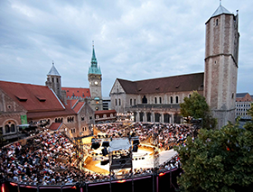 Braunschweig. In 19 Vorstellungen vom 26. August bis 13. September präsentiert das Staatstheater Braunschweig zusammen mit Hauptsponsor BS Energy in diesem Jahr Giacomo Puccinis Oper „Tosca“ im historischen Zentrum von Braunschweig auf einer Open-Air-Bühne (Foto: © Karl-Bernd Karwasz)...