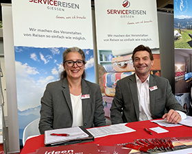 Stephanie Ungericht und Michael Gräpel (Foto, v.l.n.r.) von Service-Reisen haben die Aktivreisen 2023 und die Paketreisen 2023 mit im Gepäck. Der Katalog zu den Eventreisen beinhaltet viele Highlights, unter anderem das Käsefest in Holland, Weinfest am Gardasee oder Sommerfest in der Toskana...