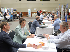 (coe) Natürlich sei man von vergangenen VIP-Treffs andere Zahlen gewöhnt, erklärt VPR-Präsident Adriano Matera im Pressegespräch während der „VPR VIP-Treff Summer Edition“ am Nachmittag (Foto, © lop). 51 angemeldete Besucher/innen aus 42 Unternehmen trafen auf 54 ausstellende Unternehmen. Bisher war man eher an Zahlen im dreistelligen Bereich gewöhnt.