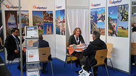 (lop) Über einen „sehr erfreulichen ersten Messetag“ freute sich Susanne Körbel (Foto, im Kundengespräch) am Stand von alpetour. Besonders erfreulich: Neben den fast durchgängig gebuchten Terminen kam es auch zu spontanen Standbesuchen mancher Busreiseveranstalter...
