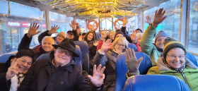 (EB) Beste Stimmung im Bus: Bei der neuen EuroBus-Leserreise - einer kombinierte Mini-Cruise mit Stena Line und Viking Line zu den schönsten Städten Skandinaviens ...