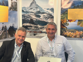 (coe) Geschäftsführer Christoph Brunner und Vehbi Aggün (Foto, v.l.n.r., © coe) von der Schweizer Incoming Agentur USP Touristik präsentieren ihr Angebot an Stand B39 in Köln – die USP Touristik AG stellt Reisepakete für ...
