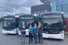 Ende 2024 übernahm die Meyering Reisen GmbH aus Lingen (Ems) drei vollelektrische Novociti Volt von Isuzu Bus für den Einsatz in der Verkehrsgemeinschaft Emsland-Süd (VGE) (Foto: © Isuzu Bus). Die Fahrzeuge werden zukünftig ...