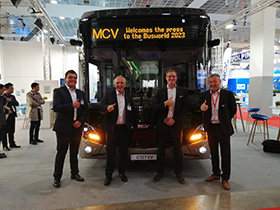 (coe) Per Fähre ist der vollelektrische Low-Entry C127 EV aus Kairo nach Deutschland gereist - "gemacht für die Stadt" und gemacht für den deutschen Markt, präsentiert MCV den Stadtbus auf der Busworld (Foto unten, (c) coe). Nach der Messe-Premiere in Berlin glänzt der C127 EV nun auch in Brüssel. Mit einer Gesamthöhe von 3,2 m, fasst der Low-Entry bis zu 90 Fahrgäste bei maximaler Batteriekapazität von 462 kWh...