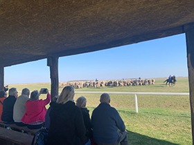 Nach der Rückkehr zum Schiff und dem Mittagessen ging es direkt weiter in die Puszta, wo neben einer beeindruckenden Pferdeshow (Foto Mitte) auch allerlei ungarische Köstlichkeiten zum Probieren bereit standen.