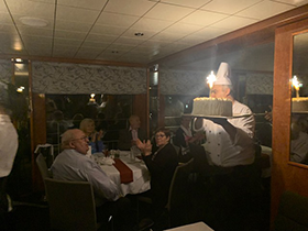 Die DCS Amethyst verabschiedete sich von der Wachau (Foto oben) und nahm Kurs auf Passau. Den Nachmittag verbrachten die Passagiere bei Kaffee und Kuchen in der Panorama-Bar, bevor die Reise mit dem Kapitänscocktail und dem großen Abschieds-Galadinner (Foto unten) ihren krönenden Abschluss fand.