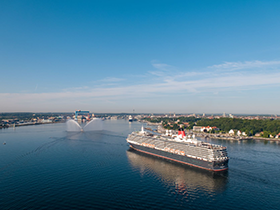 Wer die Queen Mary 2 bereits kennengelernt hat und auch mal eine andere Queen ausprobieren möchte, den nimmt die Queen Victoria (Foto unten, © Cunard Line) Anfang Juni 2022 gerne auf einer Kurzreise ab Southampton nach Hamburg mit. Zudem fährt die „Vicky“ Ende Juni 2022 von der „Sailing City“ Kiel hoch in den Norden nach Skagen und von dort nach Southampton.