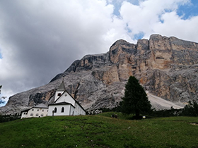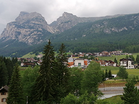 Dann geht es mehr als eine Stunde bergab – und bald trennt sich die Gruppe: Die einen gehen weiter in den nächsten Ort, um von dort aus bequem mit dem Linienbus nach La Villa, dem nächsten Etappenziel, zu kommen. Die anderen gehen auf der Berg-Route unterhalb der „Neunerspitze“ weiter und nehmen noch einmal 3 Stunden Fußmarsch in Angriff, um von der Talsohle aus wieder hinauf auf den nächsten Berg bis zur dortigen Seilbahnstation zu kommen. Die Zeit wird knapp, denn um 17 Uhr fährt die letzte Gondel hinab ins Tal. Doch trotz Gewitter mit Hagel und Platzregen gerade noch geschafft: Eine der letzten Gondeln bringt die Wanderer komfortabel bergab zur Talstation nach Badia. Dort trifft man sich mit dem ersten Teil der Gruppe und lässt sich gemeinsam von dem Shuttle von Funactive Tours Tageshotel Rezia in La Villa die letzten Kilometer fahren.