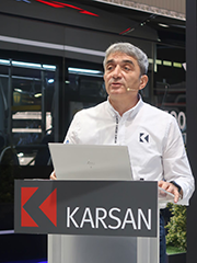 Nach Temsa und Anadalu Isuzu ist es vor allen anderen Karsan, erst seit 55 Jahren im Markt - aber dies mit stetigem Vorwärtsgang – der interessante Busse mit neuen Antrieben vorstellt. Premiere feiert ein Wasserstoff-Bus, e-Ata hydrogen, mit dem Karsan CEO Okan Ba? (Foto) auch Chancen im deutschen Markt sieht. H2 ist für Karsan, der ein breites Portfolio von batterieelektrischen Stadtbussen nach Hannover mitgebracht hat, durchaus eine wichtige Zukunftsoption, „da das für Batterien benötigte Lithium weniger wird.“