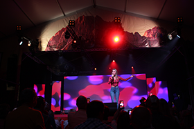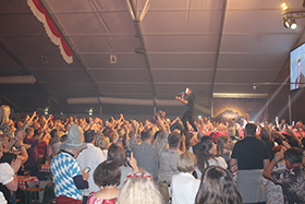 Zum Schlagerabend empfing der Wilde Kaiser seine Besucher auf dem Weg zum Festzelt mit einer imposanten herbstlich leuchtenden Bergkulisse. Angekommen in dem schön dekorierten Festzelt mit urigen Tischen und Bänken fühlt man sich sofort wohl. Die Gäste werden von Travel Partner-Mitarbeitern direkt bis zum reservierten Sitzplatz begleitet.
