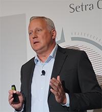 „Das Design steht für Evolution, nicht für Revolution“, erläuterte Designer Stefan Handt (Foto darunter). Die Fahrzeugfront betont die enge Verwandtschaft von TopClass und ComfortClass. Der Markenschriftzug ist dreidimensional in Chrom herausgearbeitet und steht auf einem glänzenden schwarzen Untergrund. Dahinter verbirgt sich unauffällig die Radartechnik für Assistenzsysteme. Zwei Spangen in Chrom (TopClass) und Silber (ComfortClass) fassen die dunkle Fläche mit dem Markenschriftzug wie ein Schmuckstück ein. Darüber stellt nun eine „K“-Markenplakette in Erinnerung an die Kässbohrer-Tradition selbstbewusst die Herkunft der Marke Setra heraus.