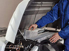 Bus-Experte Stefan Faust: „Der Klimaservice beinhaltet zum einen eine Funktionsprüfung der wichtigsten Bauteile wie Verdampfer, Kondensator, Expansionsventil und Kompressor. Zum anderen werden Leitungen, Schläuche und Verbindungen auf Undichtigkeiten geprüft. Zudem verliert jedes „offene“ System (in dieselbetriebenen Bussen) ca. 3 % Kältemittel durch natürliche Leckagen. Wird das Kältemittel nicht aufgefüllt, drohen Leistungsabfall und teure sowie zeitintensive Reparaturen.“