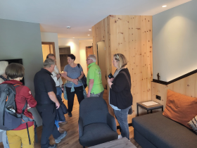 Der zweite Tag der aktuellen EuroBus-Leserreise mit X-Large startete mit einem gemütlichen Frühstück, anschließend hatten die Teilnehmenden die Möglichkeit, sich bei einer Zimmerbesichtigung genauer mit dem Sporthotel Obereggen zu beschäftigen. (Foto Mitte)