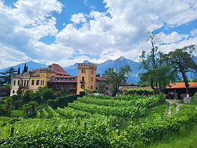 Im Anschluss stand ein Besuch der Gärten von Schloss Trauttmansdorff auf dem Programm – die Gärtne in Meran erstrecken sich aus 12 Hektar mit einem Höhenunterschied von 100 Metern. Das eröffnet Besuchern spektakuläre Ausblicke auf die über 80 Gartenlandschaften, die umliegende Bergwelt und Meran (3. Foto v.o.).