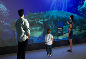 Die Ausstellung „Jurassic -The Immersive Experience™ erweckt Fossilien virtuell zum Leben und zeigt beeindruckende Dinosaurierarten wie den Brachiosaurus, Tyrannosaurus Rex oder den Stegosaurus in ihrer natürlichen Umgebung.