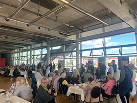 (coe) Rund 170 Teilnehmende wurden im Terminal der Stena Line zur Touristikaffähr gut gelaunt von Sünje Dorendorf (Foto oben, r.) und Ralf Seher (Foto oben, l.) begrüßt. Stena Line und die Partner der Touristikaffähr (Costa, Norwegian Cruise Line, HanseMerkur, Uniworld, RateHawk, Journaway, Ahorn Hotels & Resorts, Condor, Regent, Aldiana, Royal Carribean, Superfast ferries u.v.m.) nutzen die Möglichkeit während der Messe im Terminal der Stena Line den Expedient/innen der Agenturen und Reisebüros aus ganz Deutschland ihre Produkte und Vetriebsmöglichkeiten zu präsentieren. (Fotos: (c) coe)