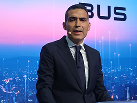 (coe) "Wir wollen die Wandlung hin zu emissionsfreier Mobilität nicht nur mitgehen, sondern anführen", erklärte Domenico Nucera von Iveco (Foto unten, c: lop) heute auf der Busworld. Das liege in der DNA von Iveco, betonte er und verwies auf die im vergangenen Jahr weltweit ausgelieferten 13.000 Iveco-Busse. Im europäischen Markt erzielte Iveco 2022 einen Marktanteil von 23 Prozent.