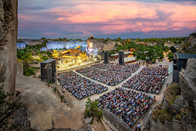 Die Liebe zwischen der Dienerin Aida und dem Hauptmann Radames muss geheim bleiben , um nicht die Eifersucht der Pharaonentochter Amneris zu wecken. Niemand ahnt, dass Aida die gefangengesetzte Prinzessin von Äthiopien ist. Als das Los der Götter Radames zum Feldherrn in der alles entscheidenden Schlacht der Ägypter gegen die Äthiopier bestimmt, stürzt Aida in einen unauflöslichen Gewissenskonflikt. Mit „Aida“ hat Giuseppe Verdi eine große Oper über die Unsterblichkeit der Liebe geschaffen. Der Altmeister der italienischen Oper trifft für jede Stimmung genau den richtigen, mitreißenden Ton. Wie kaum eine andere Oper passt sich Verdis Meisterwerk harmonisch in die raue Felslandschaft des Steinbruchs St. Margarethen ein.