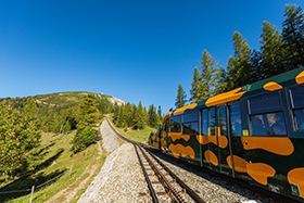 Unvergessliche Freizeit- und Ausflugserlebnisse mit den Angeboten der Niederösterreich Bahnen: Mit der Mariazellerbahn (Foto oben, © NB/weinfranz) reisen die Gäste von der niederösterreichischen Landeshauptstadt St. Pölten in den weltbekannten Wallfahrtsort Mariazell. Auf der über 120 Jahre alten Strecke der Waldviertelbahn lernen Fahrgäste die Schönheit des Nordens kennen. Besondere Perspektiven auf das Weltkulturerbe bietet die Fahrt mit der Wachaubahn. Der nostalgische Reblaus Express verbindet das Wein- und Waldviertel und ist immer mit Heurigenwaggon unterwegs. Auf den höchsten Berg Niederösterreichs auf 1800 m gelangt man am bequemsten mit den Salamander-Zügen der Schneebergbahn (Foto unten, © NB/Christian Kremsl).