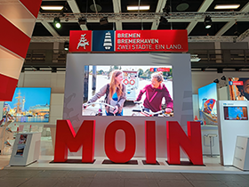 Mittlerweile schon Tradition für die Bus- und Gruppentouristik auf der ITB ist der „Bustreff“ am Messestand von Bremen und Bremerhaven (Foto oben: © WFB). In diesem Jahr erstmals mit neuem Standort in der Halle 27.