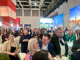 Bei dem beliebten Treffpunkt von Partner:innen und Vertreter:innen aus der Bus- und Gruppentouristik für Gespräche mit Kolleginnen, Kollegen, Verbandsmitglieder:innen des VPR, des RDA und der gbk, der Fachpresse und Ausstellenden aus Bremen und Bremerhaven, lassen sich außerdemmaritime Häppchen und gekühlte Getränke aus dem Norden genießen! (Foto unten: Bustreff 2023, © coe)