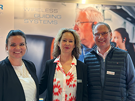 „Wir sind besonders stolz, dass unser klassisches Guidesystem made in Germany ist“, berichtet Milena Gonsor. Bisher laufe die ITB gut, aber man erhoffe sich noch mehr Laufkundschaft, erzählt Silke Schumme.„Im vergangenen Jahr hatten wir auch viele internationale Kunden, auch Fremdenverkehrsämter, von denen wir hoffen, dass sie auch in diesem Jahr den Weg zu uns noch finden“, so Schumme. Man freue sich über Gespräche mit Bestands- wie mit Neukunden. (Foto unten: Milena Gonsor, Silke Schumme, Christian Bitzer)