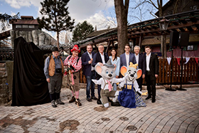 Am 23. März öffnet der Europa-Park wieder seine Tore. Durch den neugestalteten Haupteingang geht es für die BesucherInnen ab sofort noch schneller und komfortabler in Deutschlands größten Freizeitpark. Zudem gibt es zum Start der Sommersaison zahlreiche neue Angebote rund um Gastronomie und Shopping (unser Foto zeigt: Michael, Roland, Ann-Kathrin, Thomas, Jürgen und Frederik Mack vor dem "Alpenexpress Enzian" und der "Tiroler Wildwasserbahn", die am 14. Mai eröffnen. c: Europa-Park)