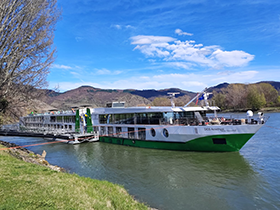 Nach dem Auftritt des Salonorchester Aphrodite und dem Piraten-Abend führte der fünfte Tag der aktuellen Leserreise die Teilnehmenden in die Wachau (Foto oben). Das erste Ziel war das über 900 Jahre alte Barockstift Melk (Foto Mitte) und sein mit seinem einzigartigen Stiftpark. Das Stift wird seit seiner Gründung von Benediktinermönchen bewohnt. Im Anschluss ging es durch die wunderschöne Landschaft in das herrlich gelegene Weindorf Dürnstein. Nach einem kleinen Rundgang gingt es weiter durch die Weinstraßen und am Ende des Ausflugs zu einer Weinverkostung.