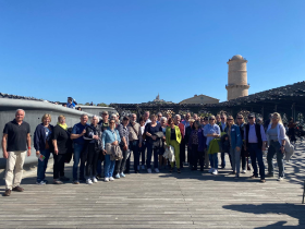 (coe) Am Donnerstag startete die EuroBus-Leserreise „Provence Panorama: Kunst, Kultur und Gaumenfreuden rund um Marseille“ mit Touren Service Schweda. Nach der Anreise mit dem TGV von Straßbourg aus, erreichte die Gruppe Marseille (Foto oben, © Touren Service Schweda/ Valérie Wald). Direkt ging es mit dem Bus zum „Mucem“, dem Museum der Zivilisationen Europas und des Mittelmeers. Nach einem Empfangsumtrunk (Foto Unten, © Touren Service Schweda/ Valérie Wald) folgte die Besichtigung des Museums.