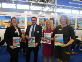 (EB) „Wir sind nach einem hervorragenden Jahr 2023 mit der Buchungslage 2024 und den Voranfragen für 2025 sehr zufrieden“, freut sich Susanne Körbel, Abteilungsleiterin Paketreisen bei alpetour, über den Aufschwung in der Bustouristik. Die gute Stimmung spiegelt sich am Stand D 30 wider: Gleich zu Beginn der RDA Expo „volles Haus“ bei alpetour. Kein Wunder: Die Starnberger haben bereits alle 4 neuen Kataloge für 2025 nach Köln mitgebracht (auf unserem Foto präsentiert von: v.l. Stefanie Dietrich, Volker Stekelenburg, Yvonne Fischer und Susanne Körbel).