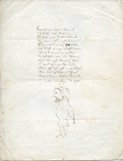 Die Ausstellung fügt lose und verstreute Puzzleteile neu zusammen, um dem Menschen Wagner ein Profil zu geben. Vor dem Hintergrund einer Topographie des 19. Jahrhunderts, dessen „vollständigster Ausdruck“ Wagner nach Thomas Mann war, zeigt die Ausstellung Richard Wagner so weniger als den selbstschöpferischen, genialen Demiurgen und Visionär, sondern als Kind seiner Zeit und Produkt seiner Lebensumstände. Durch Kinderstube und Schule, Küche und Garderobe, Bibliothek und Arbeitszimmer führt die Suche nach dem Richard Wagner, der nicht als „Meister“ geboren wurde und selbst dann dem „Menschlich-Allzumenschlichen“ (Nietzsche) nicht entkam. (Foto: Gedicht mit Selbstporträt Richard Wagners, 1841 (Tinte/Papier). © Nationalarchiv der Richard-Wagner-Stiftung Bayreuth.