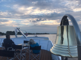Nach der Einschiffung trafen sich die Teilnehmenden der Leserreise in der Lobby und konnten anschließend das Welcome Dinner und die Begrüßung durch den Kapitän und seine Crew genießen. Im Anschluss konnten sie sich an der Bar mit Life-Musik entspannen.