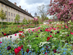 Fachkundige Führungen durch historische Klostergärten finden Gruppen in Kloster Dalheim, das mit einer besonders schönen gruppengeeigneten Klostergastronomie punktet. Im Remtergarten an der UNESCO Welterbestätte Kloster Corvey wurde mit dem Huxarium Gartenpark Höxter nach dem Ende der Landesgartenschau 2023 ein bleibendes Kleinod geschaffen (Foto Mitte: © Gartenpark Höxter).