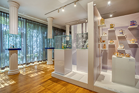 Ob für Jung oder Alt, Sammler oder Designinteressierte, Familien oder Schulklassen – die verschiedenen Inszenierungen im Porzellanikon Hohenberg an der Eger bieten eindeutig mehr als schöne Stücke in Vitrinen (Foto unten: Foto: Andreas Gießler © Porzellanikon). Der Rundgang führt den Besucher durch inszenierte Porzellangeschichte im deutschsprachigen Raum vom beginnenden 18. Jahrhundert bis zur politischen Wende 1989. Mit der Gründung der ersten Porzellanfabrik Nordostbayerns legte Carolus Magnus Hutschenreuther in Hohenberg an der Eger den Grundstein dafür, dass sich die Region nach 1814 rasch zum Zentrum der deutschen Porzellanindustrie entwickelte. Im Jahr 1982 wurde das Porzellanikon in Hohenberg an der Eger gegründet und fand eine Bleibe in traditionsreichem Hause: In der ehemaligen Direktorenvilla des Familienunternehmens C.M. Hutschenreuther. 1995 wurde das historische Haus um einen modernen Anbau aus Glas und Stahl auf 2000 m² erweitert. Heute zeigt das Museum rund 10.000 Exponate. Der stimmungsvolle Museumsgarten lädt zum Verweilen unter Apfelbäumen und Rosenlauben ein. Sonderausstellungen behandeln immer wieder zentrale Aspekte der Porzellangeschichte aus unterschiedlichsten Perspektiven. Es wird auf wichtige geschichtliche Daten und Jubiläen eingegangen. Aber auch spannende Themen werden den Besuchern vor Augen geführt.
