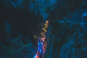 Die spektakuläre Viamala-Schlucht ist ohnehin schon ein beeindruckendes Naturmonument in den Bündner Alpen. Seit neuem verwandelt sich die Schlucht am Abend in eine zauberhafte Oase des Lichts. Dutzende von farbigen Scheinwerfern sind strategisch platziert, um die markanten Konturen der Felswände hervorzuheben und die Schlucht in ein surreales Farbenspiel zu tauchen.