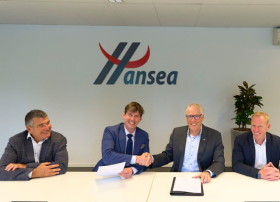 Bereits 90 MAN Lion`s City E hat der führende private Busbetreiber in Belgien, Hansea, erfolgreich im Einsatz. Jetzt hat das Verkehrsunternehmen 181 weitere e-Busse bei MAN Truck & Bus geordert – und stockt damit seine Flotte auf insgesamt 271 der vollelektrischen Stadtbusse auf. Ausgeliefert werden die Fahrzeuge in diesem und im kommenden Jahr (Foto: Bei der symbolischen Vertragsunterzeichnung, v.l.: Mario Provez, Technical Director bei Hansea; Joris Larosse, CEO Hansea; Friedrich Baumann, im Vorstand der MAN Truck & Bus, Sales und Customer Solutions; Roman Sitte, Head of Area Europe bei MAN Truck & Bus SE, c: MAN Truck & Bus).