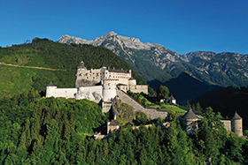 Majestätisch thront die Burg Hohenwerfen (Foto Mitte, © Salzburger Burgen und Schlösser) auf einem Felsen hoch über dem Salzachtal. Um ihre Türme kreisen Greifvögel und wer die mächtigen Mauern durchschreitet, betritt eine andere Welt. Hier kann man das Mittelalter mit allen Sinnen erleben. Kein Wunder, dass die Erlebnisburg zu Salzburgs beliebtesten Familienausflugszielen zählt.