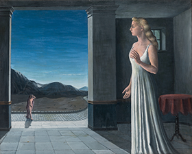 Das Museum La Boverie in Lüttich präsentiert vom 4. Oktober 2024 bis zum 16. März 2025 eine faszinierende Retrospektive des belgischen Künstlers Paul Delvaux. Die Ausstellung würdigt Delvaux’ unverwechselbaren Stil, der die Grenzen zwischen Realität und Traumwelt verwischt. Seine Werke, geprägt von Bahnhöfen und Frauenfiguren, entführen die Betrachter in eine magische, surrealistische Welt. (Foto: Paul Delvaux, L`Aube, 1943, oil on canvas, 80 x 100 cm, private collection on deposit at Musée Paul Delvaux © Foundation Paul Delvaux, Belgium/SABAM, 2024 © Photo Vincent Everarts).
