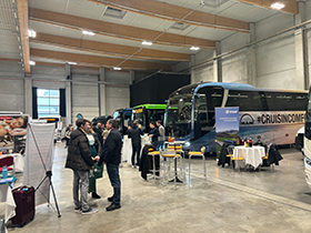 An den gut besuchten Ständen der 130 Aussteller finden viele Gespräche statt und auch um die neun in der Halle ausgestellten Busse, unter anderem von MCV, MAN, Setra und Atos, kommen viele Busunternehmer zusammen, um sich zu informieren (Fotos unten, © coe).