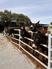 Mit dem sechsten Tag neigten sich die Tage auf Zypern ihrem Ende zu. Auf dem Weg zum Flughafen hielt die Gruppe in Skarinou und besuchte eine Eselfarm – mit vielen Informationen über die traditionelle Bedeutung der Esel auf Zypern (Foto unten). Zum Abschluss der Leserreise „Land und Leute auf Zypern“ mit Gebeco fanden sich die Teilnehmenden zu einem zypriotischen Brunch zusammen, um ein letztes Mal die zypriotischen Köstlichkeiten zu genießen (Foto oben, Fotos: © EB/M.Graf).