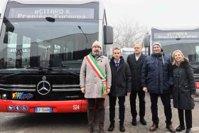 Das Jahr 2025 im ÖPNV der italienischen Stadt Asti startet elektrisch und kann zugleich eine Europa-Premiere feiern: Die ÖPNV-Betreibergesellschaft Asti Servizi Pubblici S.p.A. (ASP S.p.A.) in der Region Piemont erhält die ersten batterieelektrischen Mercedes-Benz eCitaro K (Foto oben, © Daimler Truck), die seit Beginn der Serienproduktion im Herbst 2024 gebaut worden sind. Die vier kompakten Premierenfahrzeuge mit nur 10,63 Metern Länge sind zusammen mit 12 eCitaro 12-Meter-Linienbussen im Rahmen einer Ausschreibung übergeben worden. Zusätzlich wurde im Herbst 2024 noch ein weiterer eCitaro Solobus bestellt. Damit stehen ASP S.p.A. künftig ingesamt 17 neue batterieelektrische Linienfahrzeuge zur Verfügung.