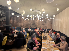 Zum Tagesabschluss fanden sich alle Teilnehmenden zu einem Abendessen im Restaurant in Reims zusammen, bevor der erste Tag der Inforeise zu Ende ging (Foto unten).