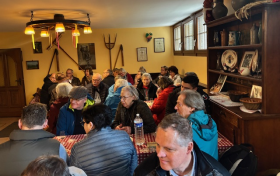 Bei einer anschließenden Weinprobe (Foto unten) wurden noch einmal vier regionale Weine verkostet, bevor es zum Abschlussmittagessen unter dem Motto „Sauer macht lustig“ ging, denn es ging nach Krautergersheim, der „Hauptstadt des Sauerkrauts“. Die gute Laune hielt denn auch auf der Rückfahrt nach Mannheim an, wo die fünftägige Inforeise nach vielen Eindrücken und Erlebnissen ihren Abschluss fand.