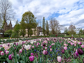 Klein-Holland am Rand von Ostwestfalen: Im Remtergarten am Schloss Corvey bei Höxter blüht bald wieder ein Tulpenmeer. Bis zu 30.000 Tulpen in über 80 Sorten recken sich zu Füßen des Welterbes in den Himmel. Wer also zum Beispiel Inspiration für den heimischen Garten sucht, wird beim Frühlingsspaziergang fündig – ab Samstag, 12. April ist der Remtergarten wieder geöffnet (Fotos: © Huxarium Gartenpark Höxter).