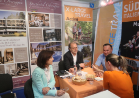 (lop) Seit über 30 Jahren ist X-Large Travel bereits bei den RDA Messen dabei. Gottfried Walter (hier mit seiner Frau Irma und Tochter Lina am Stand), Geschäftsführer des Italien-Spezialisten mit Sitz in Montan/Südtirol, ist auch bei dieser RDA Expo ein begehrter Gesprächspartner der Busreiseveranstalter. „2024 war für uns eine sehr gute Saison. Auch in diesem Jahr sind wir gut gestartet“.