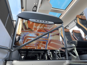 Der S 531 DT ist mit 78 Sitzplätzen und zwei Clubtischen ausgestattet und bietet durch ein Glasdach den Reisenden im Oberdeck eine attraktive Rundumsicht auf die vorbeiziehenden Landschaften. Der Reisebus der Setra TopClass verfügt über eine Vielzahl der aktuell angebotenen Fahrerassistenz- und Sicherheitssysteme von Daimler Buses, darunter den intelligenten Geschwindigkeitsassistent Traffic Sign Assist. Dieser vergleicht die aktuelle Geschwindigkeit des Omnibusses mit der zulässigen Fahrzeuggeschwindigkeit und warnt bei einer Überschreitung des erlaubten Tempos – und dies trotz unterschiedlicher Beschilderung in ganz Europa. Zudem ist der S 531 DT das erste Fahrzeug in der Gössi-Reisebusflotte, das die innovative MirrorCam an Bord hat, die durch Kameras das herkömmliche Spiegelsystem ersetzt.