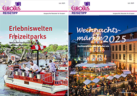 Die neuen Reisetipps „Erlebniswelten Freizeitparks“ und „Weihnachtsmärkte 2025“ stehen ab sofort auf unserer Homepage zum Durchblättern und Downloaden bereit. Darin enthalten sind viele attraktive Busreise-Ziele, wie: