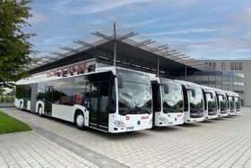 Das Ehinger Busunternehmen Bayer erweitert seine Flotte um fünf vollelektrische Mercedes-Benz eCitaro (Foto, c: Daimler Buses). Die 12 Meter langen Stadtbusse verfügen über moderne Batterien der dritten NMC-Generation mit 589 kWh Kapazität und bieten Platz für 36 Fahrgäste. Zusätzlich wurden zwei neue Gelenkbusse vom Typ Citaro G übernommen.