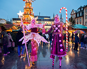 Ein großer Pluspunkt: In Fulda ist alles nah beieinander. Ein kurzer Spaziergang genügt, um in ganz unterschiedliche Stimmungen einzutauchen – lebendig am Universitätsplatz mit der großen Weihnachtspyramide oder besinnlich im Winterwald an der Stadtpfarrkirche. Während im Museumshof Gaukler für Unterhaltung sorgen, lockt der regio’markt am Buttermarkt mit Handwerkskunst und kulinarischen Köstlichkeiten aus der Region. Alles liegt dicht beieinander – abwechslungsreich, authentisch und wunderbar weihnachtlich.